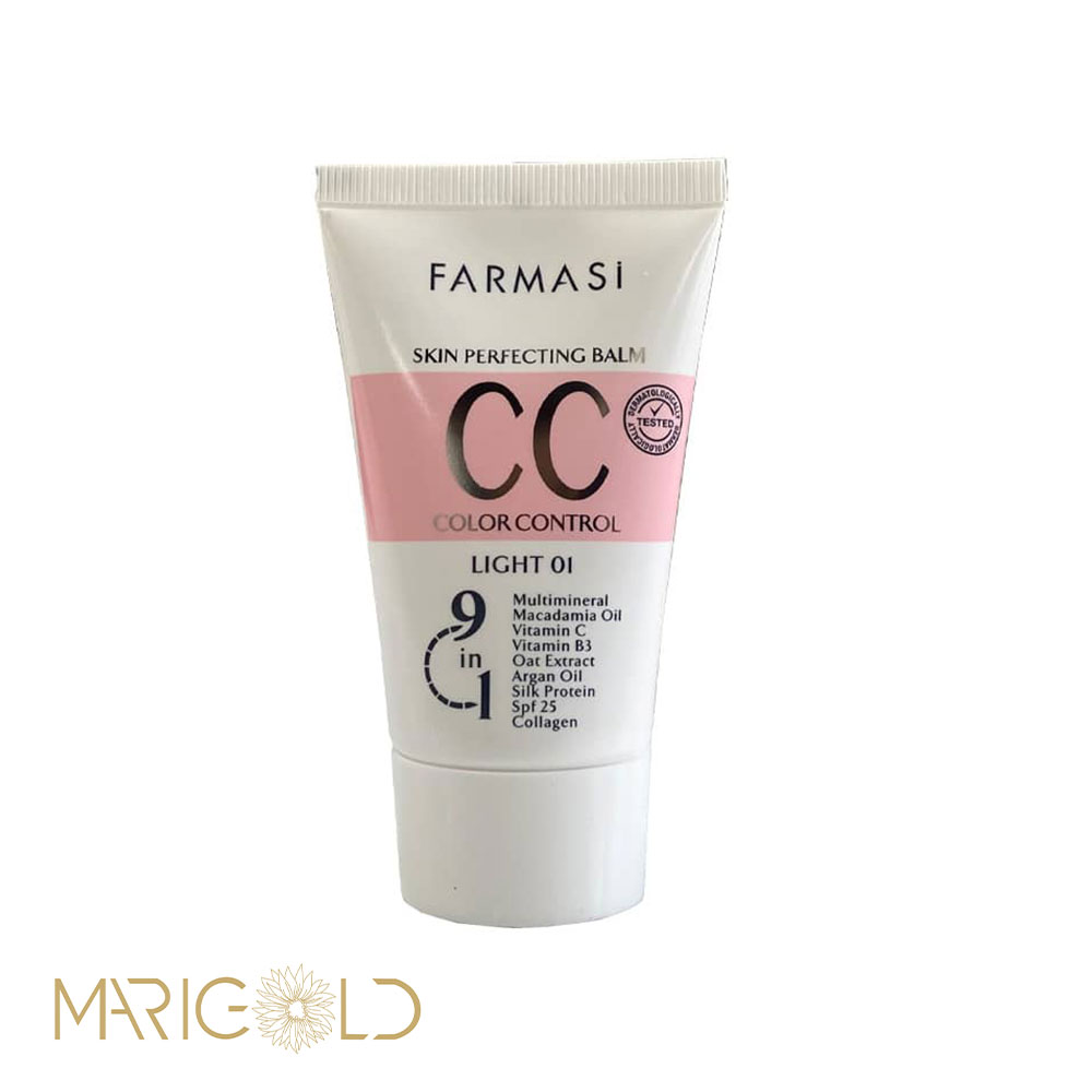 سی سی کرم فارماسی حاوی عصاره جو است که یک ترکیب ضد لک قوی به شمار می آید و از لکه هایی که در اثر تابش نور خورشید ایجاد می‌شود، جلوگیری می کند و همچنین عصاره جو یک ترکیب ضد چروک قوی است.